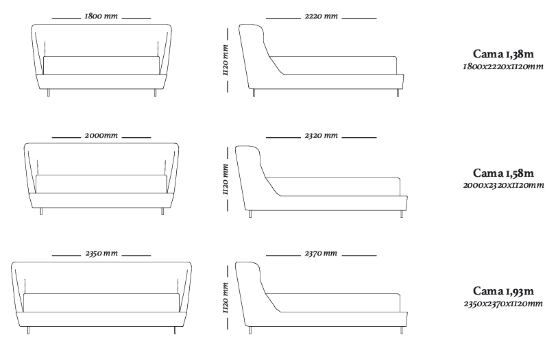 Com um formato de concha em sua cabeceira, é apoiado por um frame angular revestido com espuma e tecido, esta cama sofisticada e aconchegante encanta a todos à primeira vista.